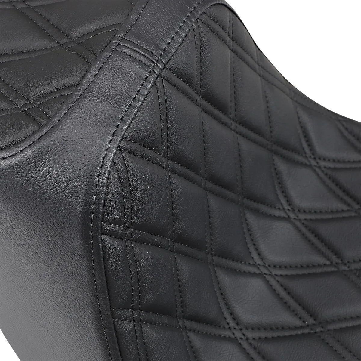 The Drag Specialties Predator III Seat combines high-quality materials and expert craftsmanship to deliver a superior seating solution. Featuring an automotive-grade vinyl cover, this seat is both durable and stylish. The molded polyurethane foam ensures maximum comfort, even on long rides. The 3/16" ABS thermoformed seat base provides a perfect fit and includes a carpeted bottom with rubber bumpers to protect your motorcycle's paint. Its narrow front design enhances leg clearance, improving your overall riding experience. This one-piece seat seamlessly integrates with Drag Specialties and most Harley-Davidson sissy bars, ensuring a secure and stylish fit. Installation is straightforward with all necessary mounting hardware included. Proudly made in the USA, the Predator III seat guarantees exceptional quality and performance. Upgrade to the Predator III seat today and enjoy a more comfortable and stylish ride. The double diamond stitching adds a custom touch to this high-quality seat.