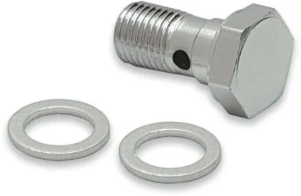 The Drag Specialties Banjo Bolt is crafted from high-quality steel and finished with a durable chrome plating, providing both strength and corrosion resistance. This single banjo bolt is designed to meet or exceed OEM specifications, ensuring a precise fit and reliable performance. Manufactured in the U.S.A., it reflects Drag Specialties' commitment to quality and precision. Whether you're replacing a worn bolt or upgrading your brake lines, this universal banjo bolt offers a dependable solution.