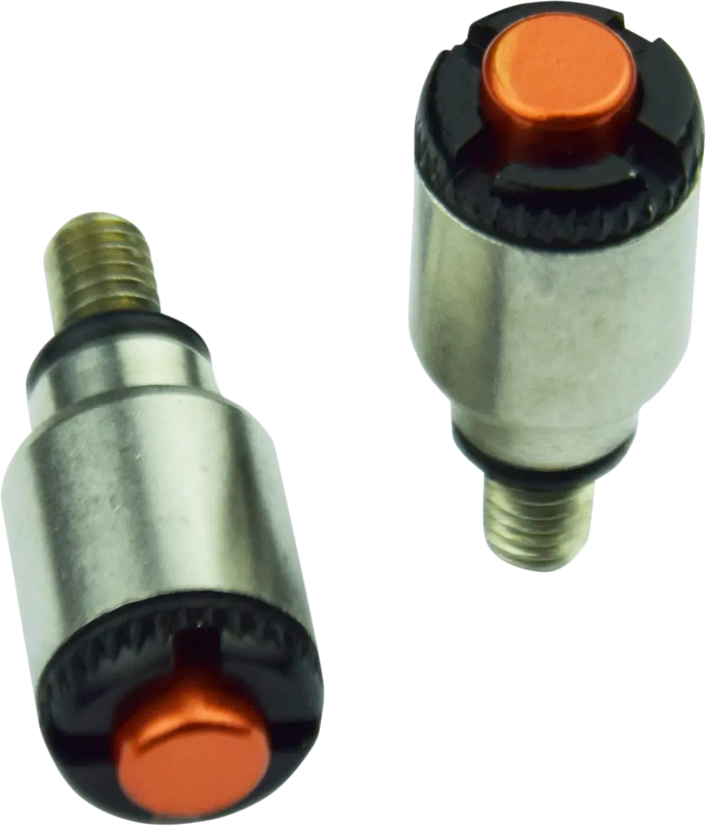 Scar Motocross Fork Air Bleeders provide a quick and easy solution for maintaining consistent fork pressure. By eliminating unwanted air buildup, these bleeders ensure your forks perform at their best, providing a smoother ride and enhanced control on the track. The anodized aluminum construction provides durability and a stylish look. Installation is straightforward, replacing the stock bleed screws with these convenient push-button alternatives. Improve your bike's performance and simplify maintenance with Scar fork air bleeders.