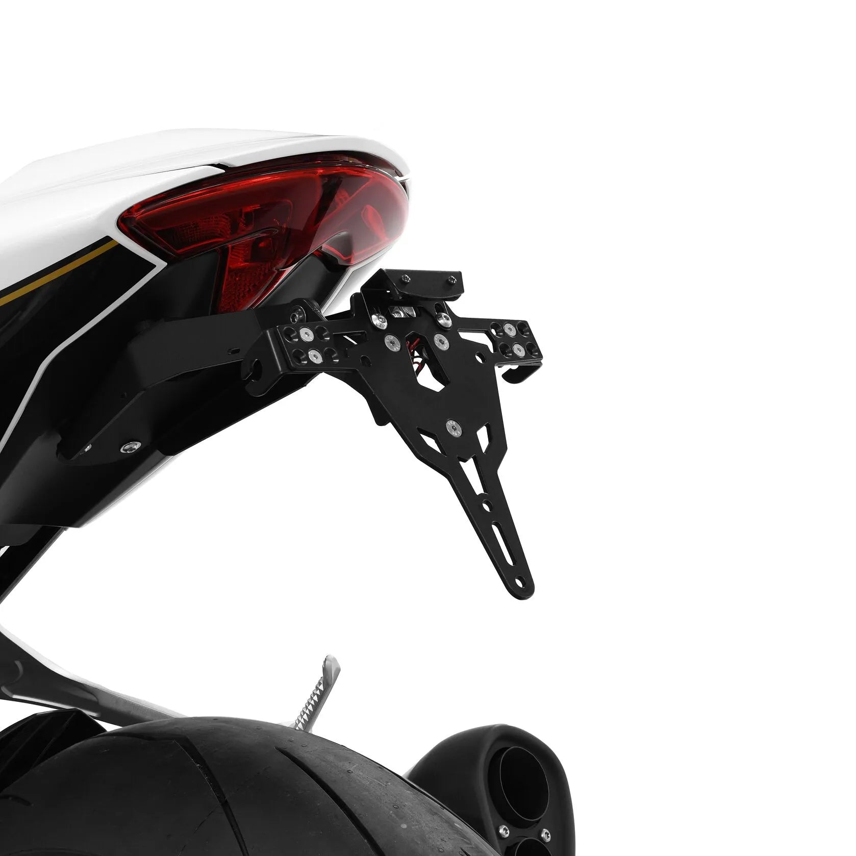 The Zieger Pro License Plate Holder is designed for ease of installation and adjustability. It requires no modification of the fairing, making it a straightforward upgrade. The stepless rake angle adjustment allows you to customize the look to your preference. Indicator supports are adjustable in three positions, providing flexibility in positioning your turn signals. Countersunk bolts ensure a flush mount of the license plate, adding to the clean and professional appearance. This Type B license plate holder is specifically designed to fit license plates in Austria, Czech Republic, Netherlands, Belgium, Greece, and Spain. The kit includes everything you need for installation, including a mounting kit, an E-approved LED license plate light with support, and a back light with support.